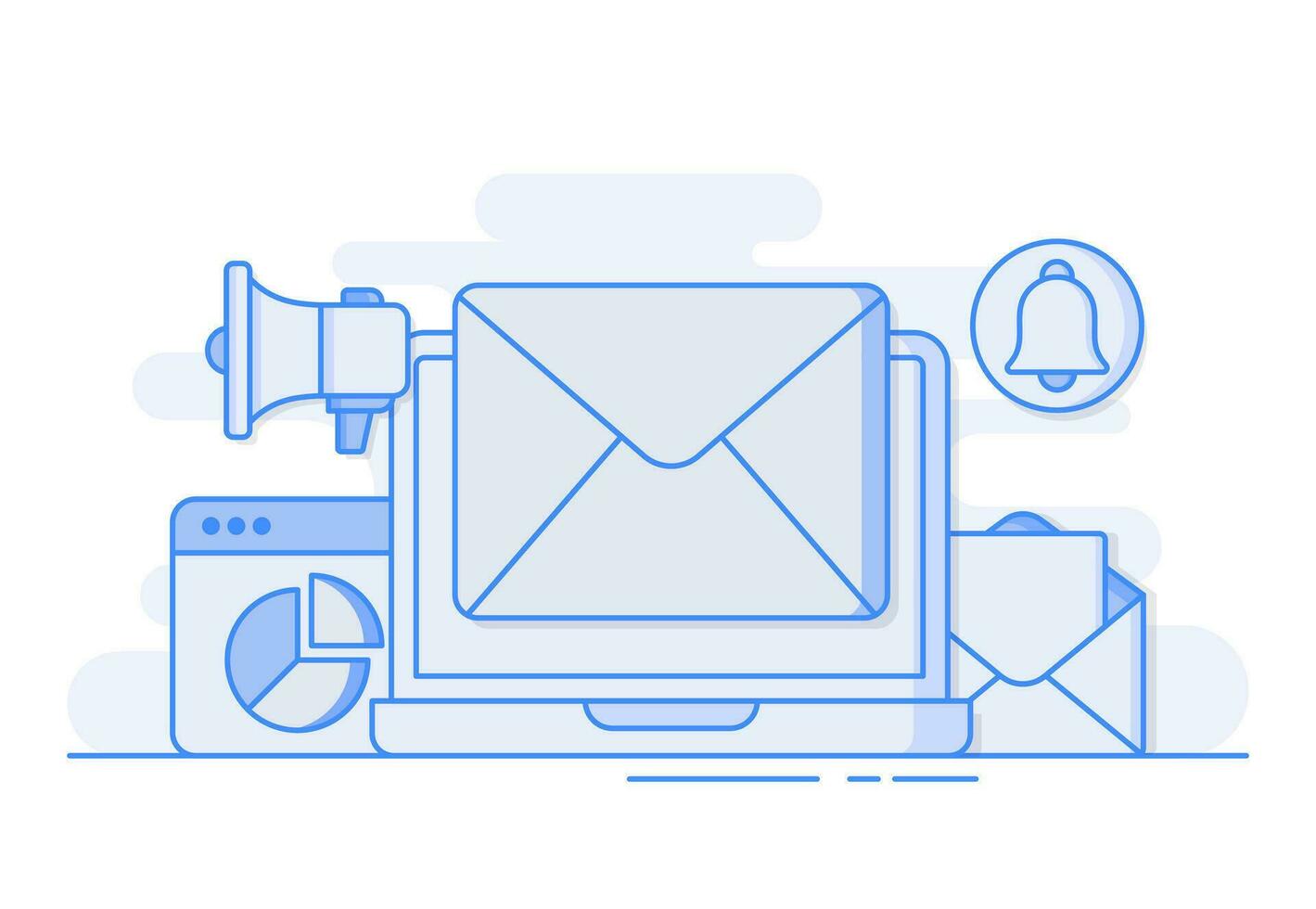 email marketing flat line illustration concept for landing page, web banner, mobile application, web design, E-mail promotion Pro Vector