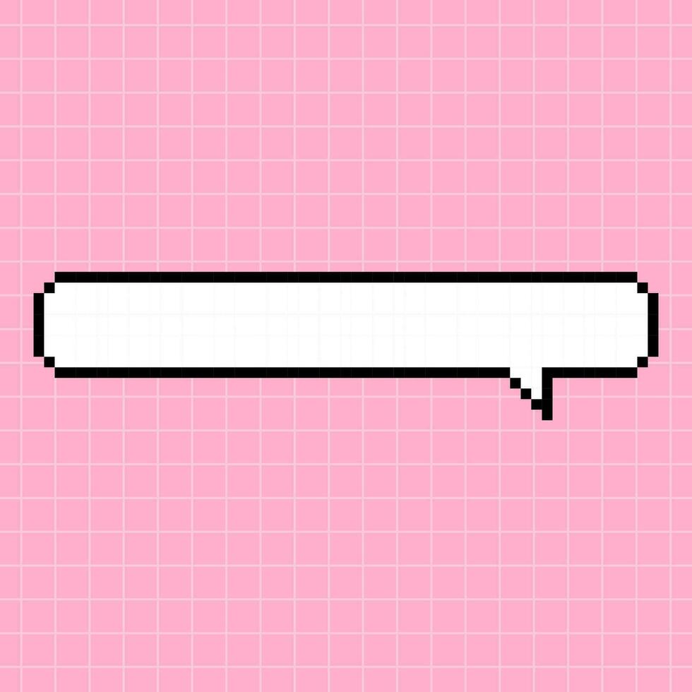 A narrow horizontal rectangular frame in the shape of a pixel dialog box on a pink checkered background. Vector element in 8-bit retro gaming style, bubble. Pro Vector