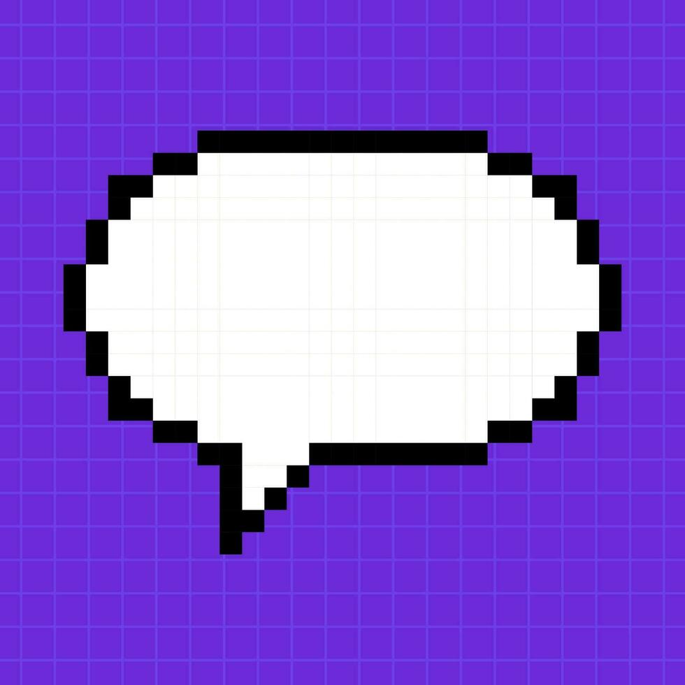 Pixel rounded dialog box on a bright purple background. Illustration in the style of an 8-bit retro game, controller, cute frame for inscriptions. Pro Vector