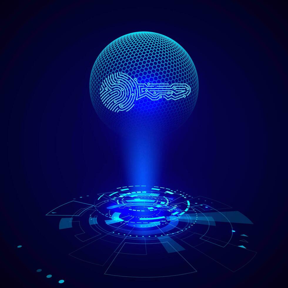 Hologram of circuit key fingerprint. Futuristic HUD elements. Sci fi futuristic user interface. Vector illustration Pro Vector