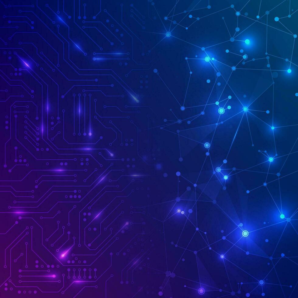 Futuristic circuit board. Electronic motherboard and abstract network. Communication and engineering concept. Digital technology background. Vector illustration Pro Vector