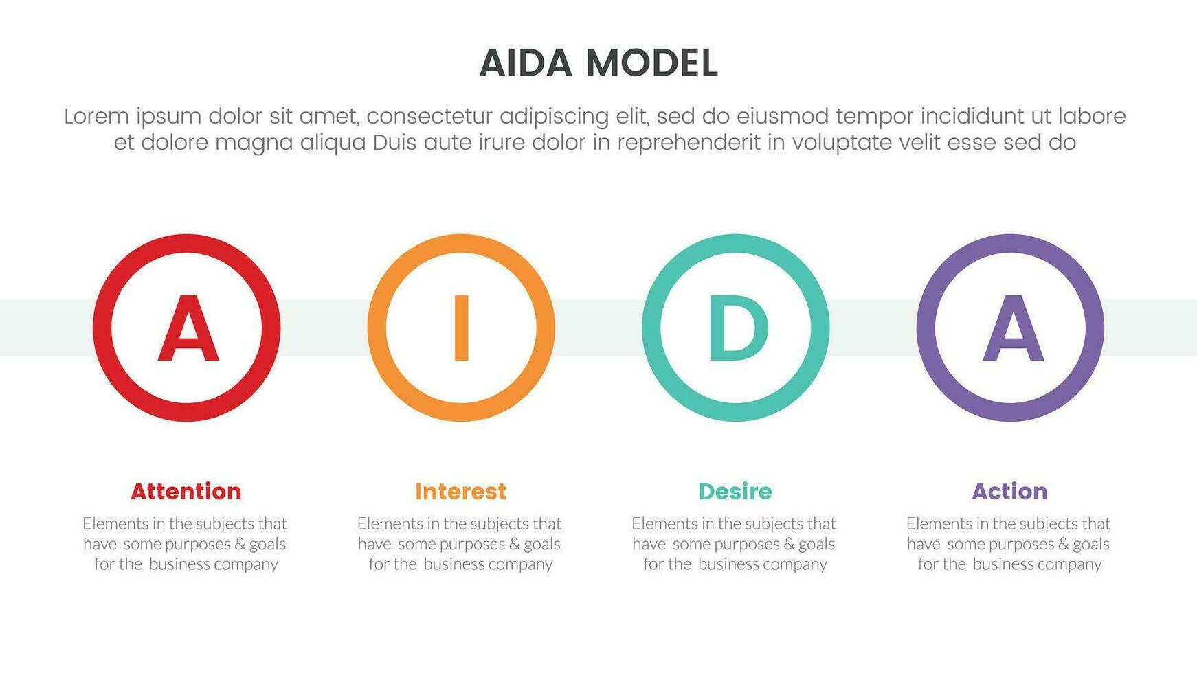 aida model for attention interest desire action infographic concept with big circle timeline 4 points for slide presentation style vector