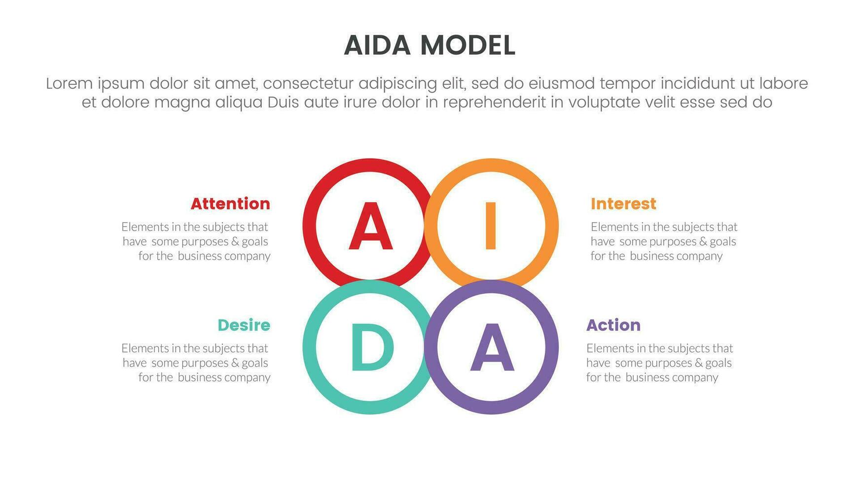 aida model for attention interest desire action infographic concept with circle center shape outline 4 points for slide presentation style vector