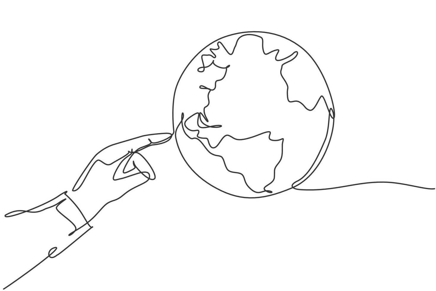 Finger touch globe earth. Single continuous line world global map graphic icon. Simple one line doodle for technology concept. isolated vector illustration minimalist design on white background Pro Vector