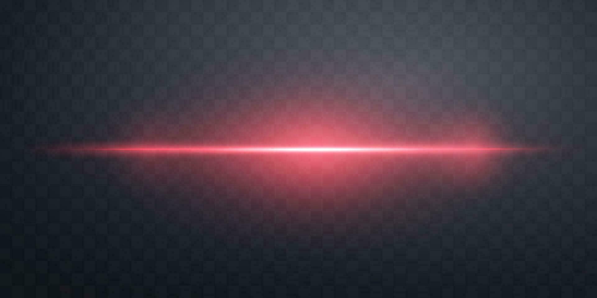 Red horizontal lensflare. Light flash with rays or spotlight and bokeh. Red glow flare light effect. Vector illustration. Pro Vector