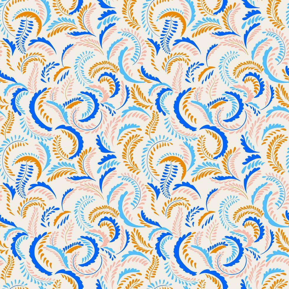 Seamless creative abstract stylized of tiny branches with drops, dots, dot pattern. Modern simple twigs yellow, blue texture branches on a white background. Vector hand drawn sketch. Pro Vector