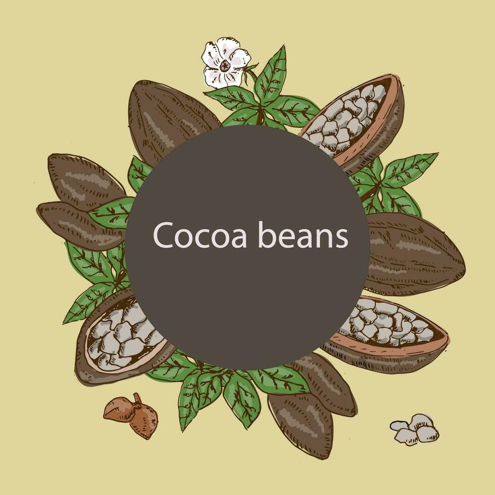 cocoa beans background with round frame Pro Vector