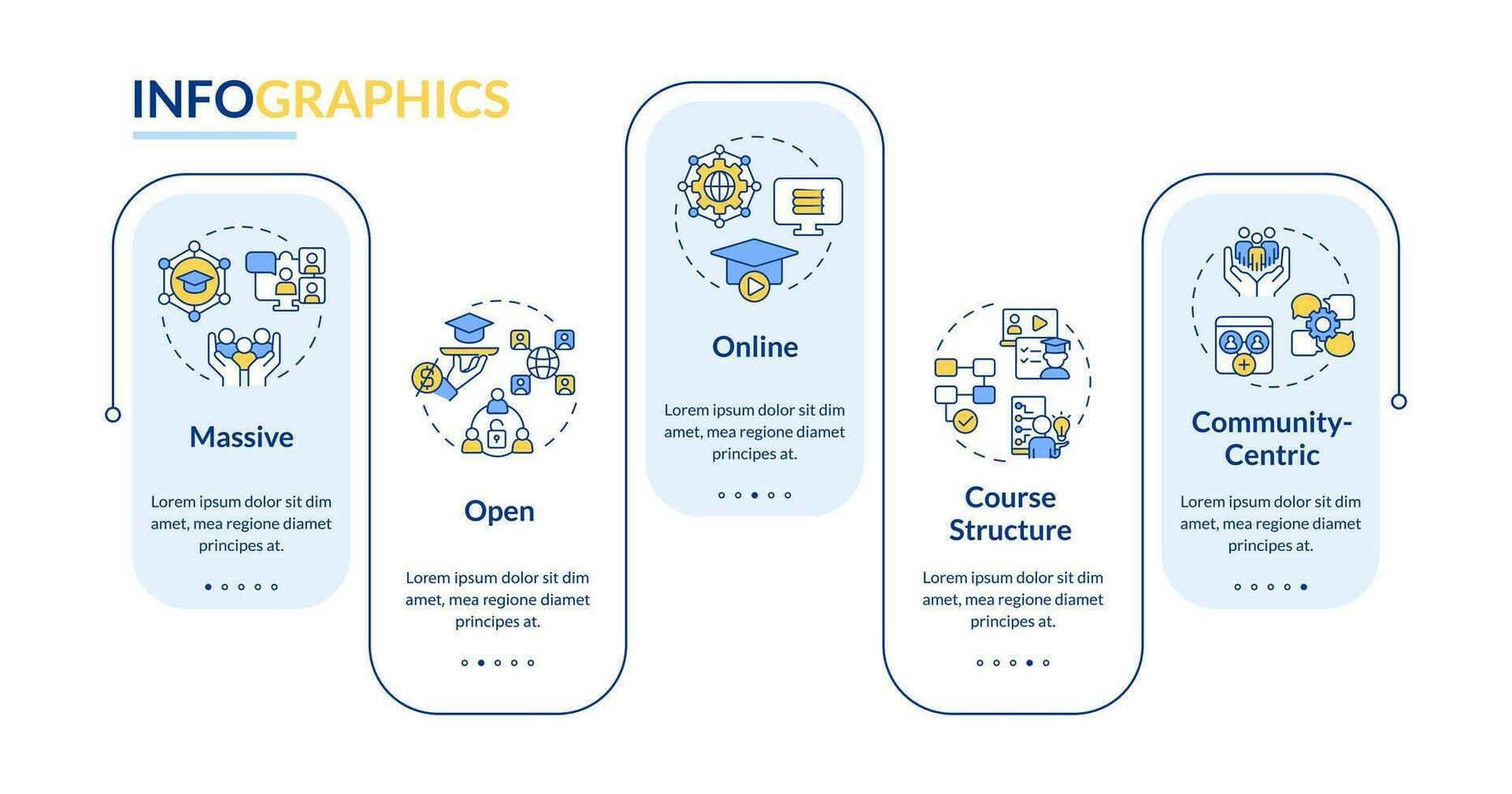 2D MOOC vector infographics template, data visualization with 5 steps, process timeline chart. Pro Vector