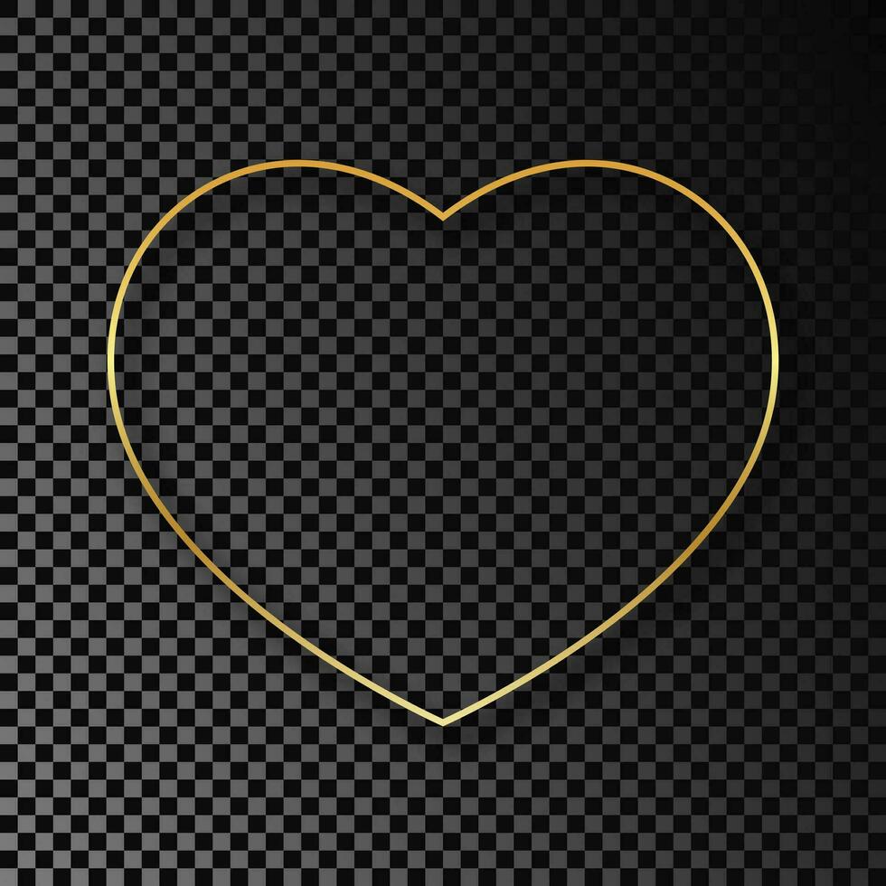 Gold glowing heart shape frame with shadow isolated on dark background. Shiny frame with glowing effects. Vector illustration. Pro Vector