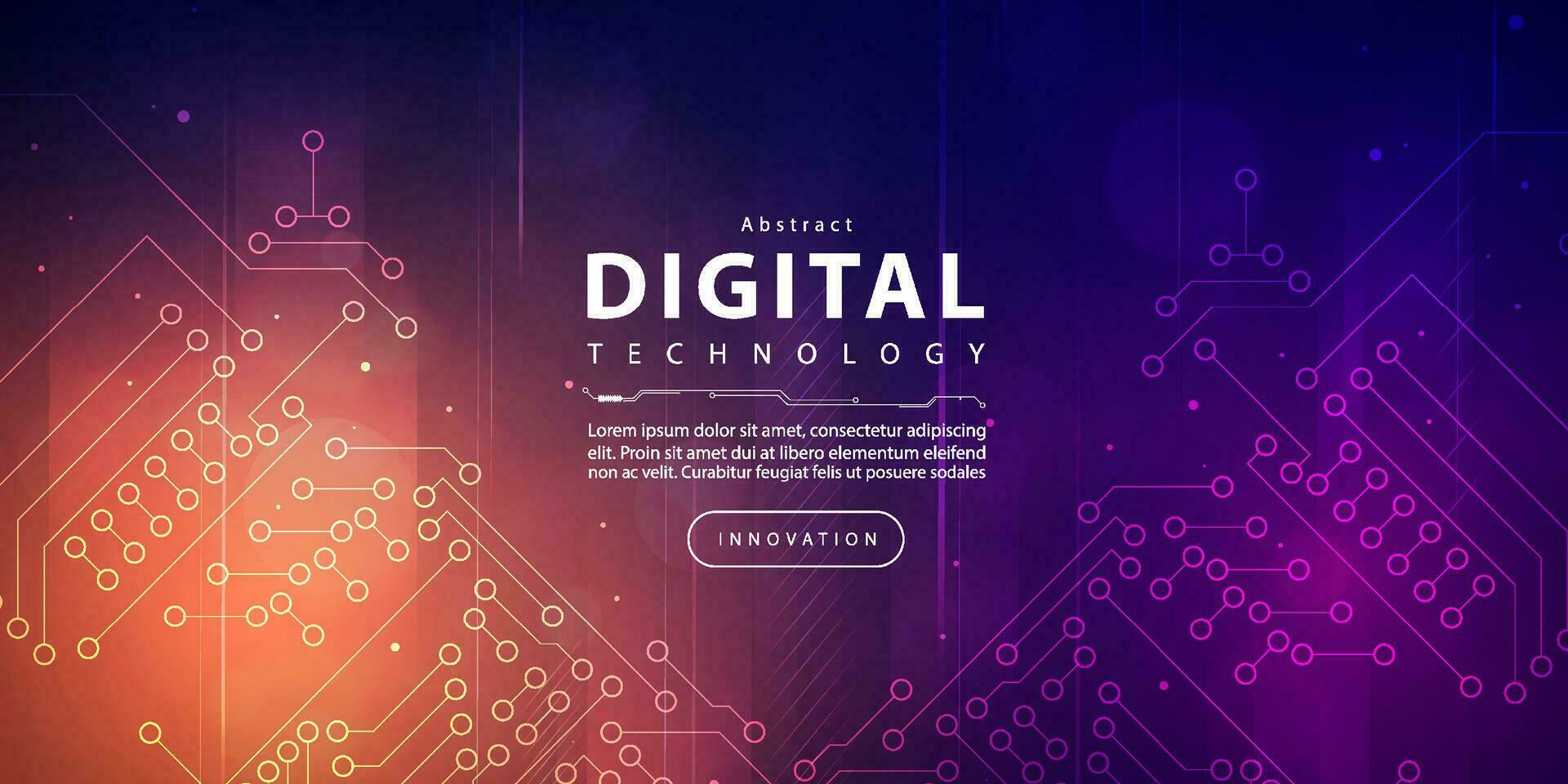 Digital technology futuristic big data orange purple background, cyber nano information, abstract communication, Ai innovation future tech data, internet network speed connection line dot illustration Pro Vector