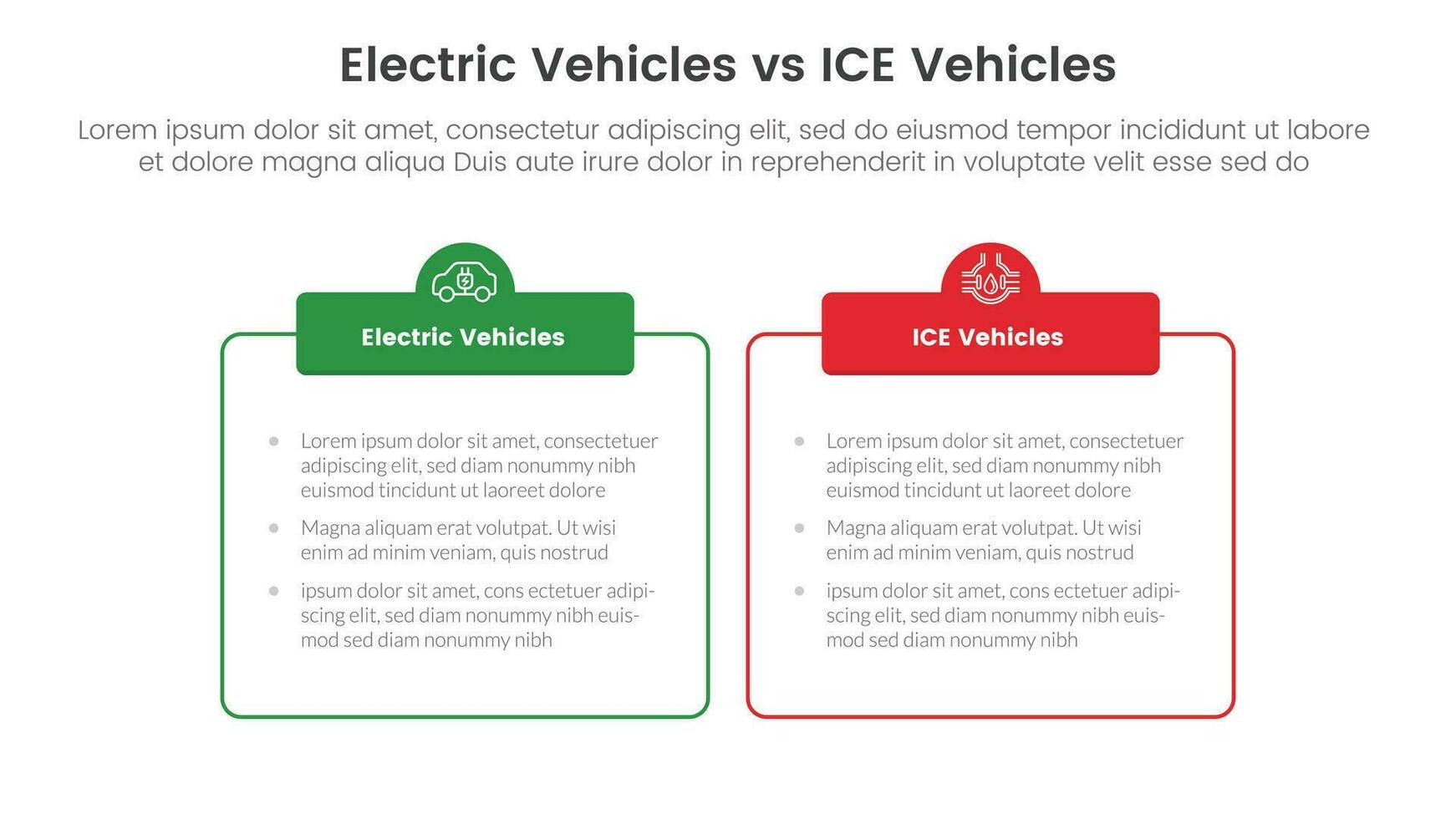 ev vs ice electric vehicle comparison concept for infographic template banner with outline box table with header with two point list information vector
