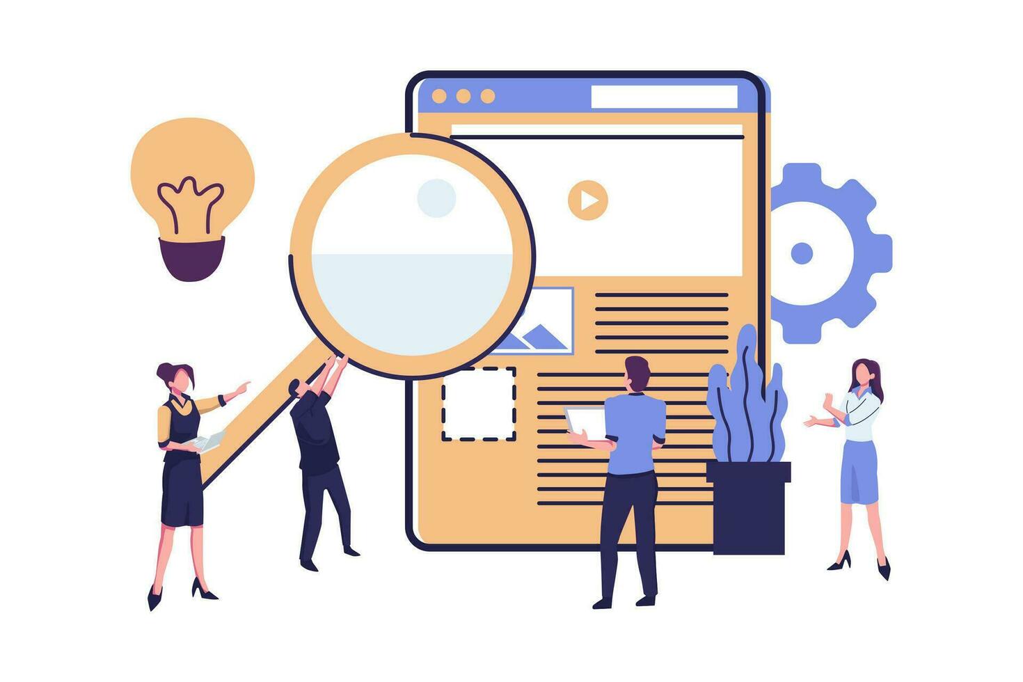 website development, teamwork, website coding, SEO concept, search engine, design for mobile and web vector