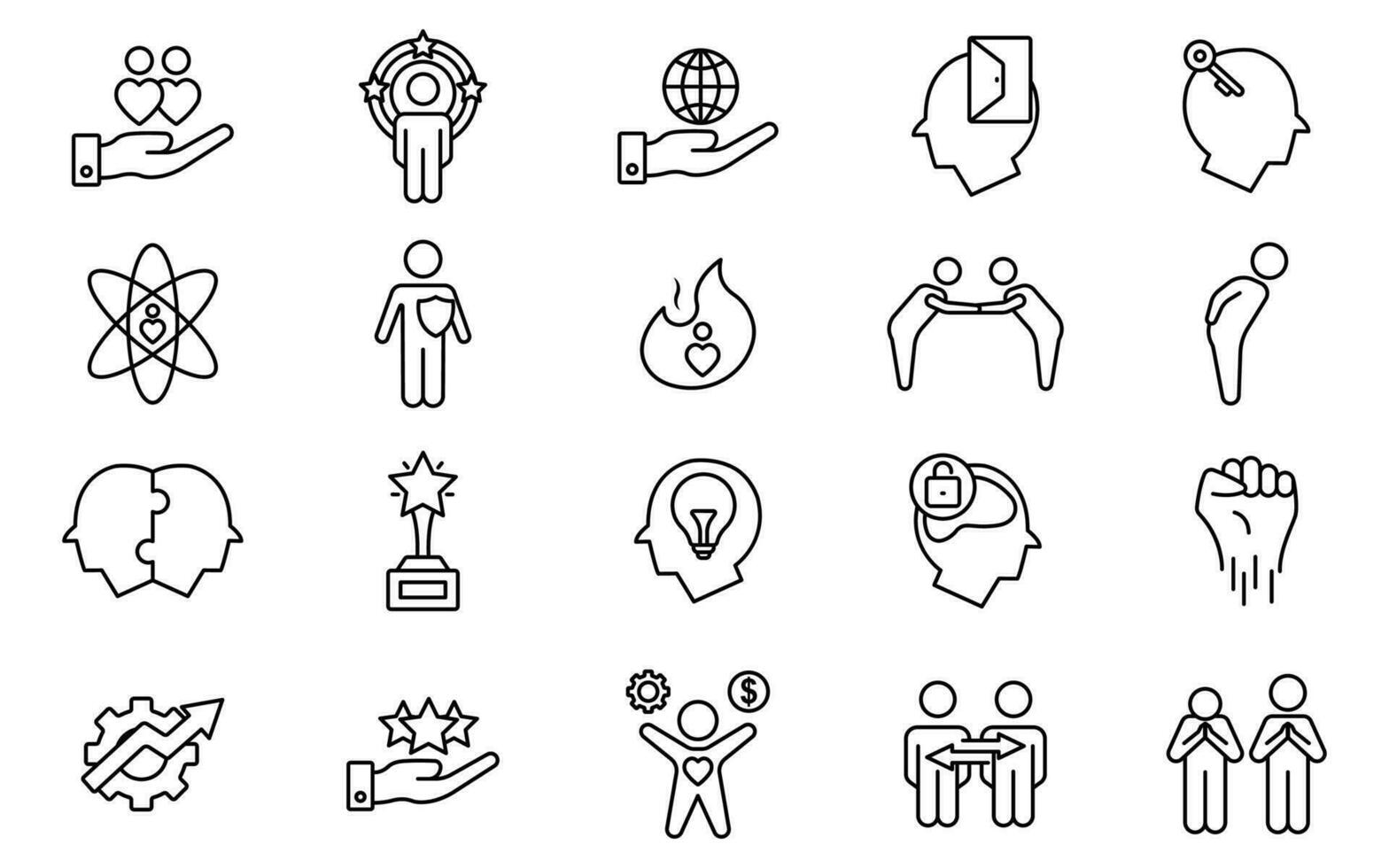 core values icon set. integrity, passion, respect, creativity, humility, empathy, etc. line icon style design. simple vector design editable Pro Vector