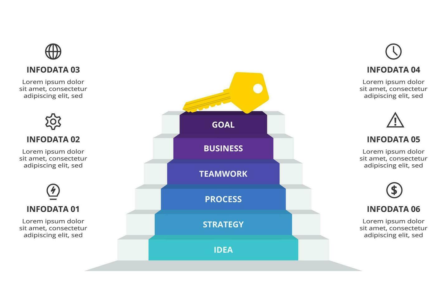Key concept for infographic with 6 steps, options, parts or processes. Business data visualization. Pro Vector and Pro SVG