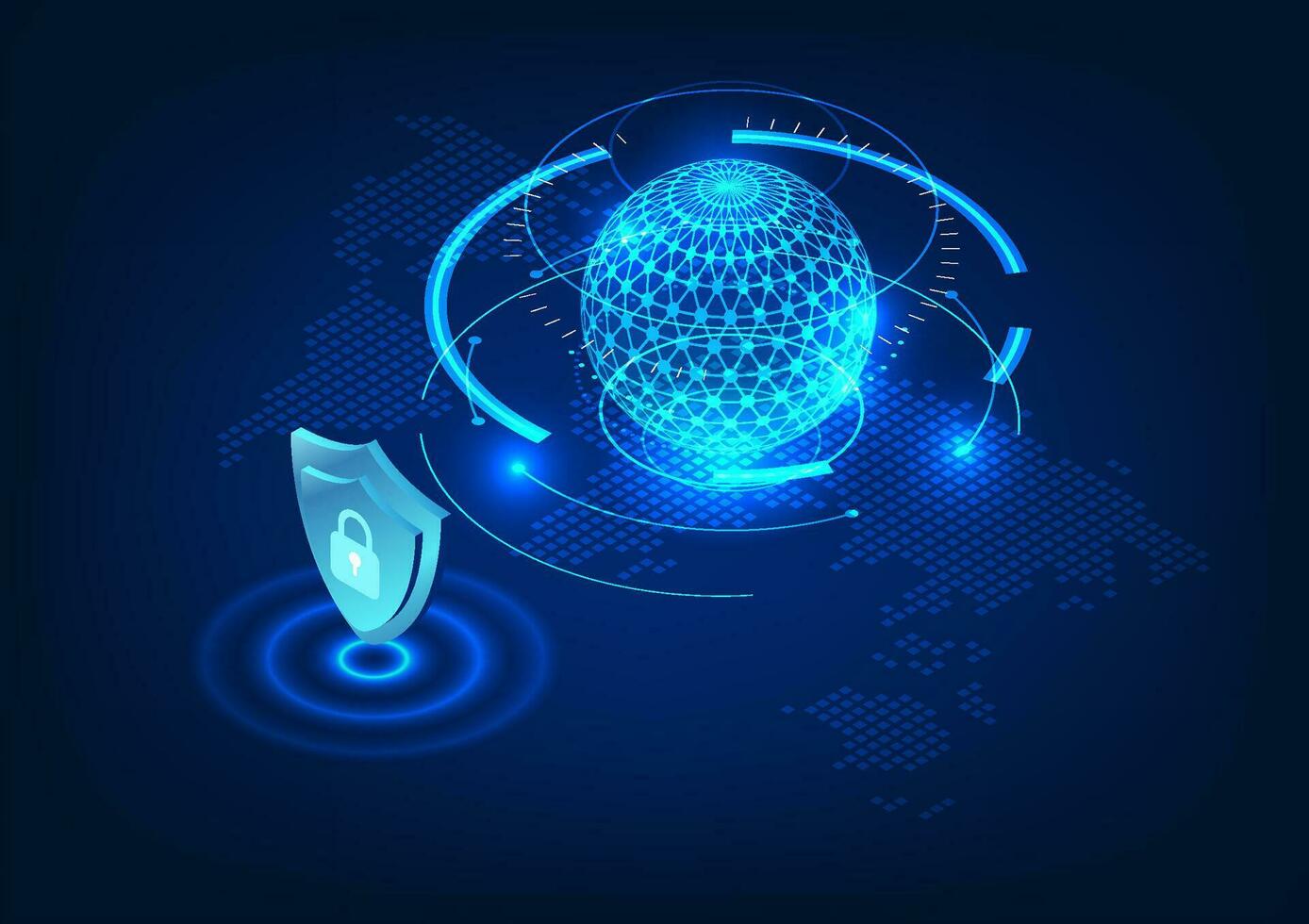 Processor technology in artificial intelligence The front of the processor is a circular shield with a lock. Referring to cyber security technology Pro Vector
