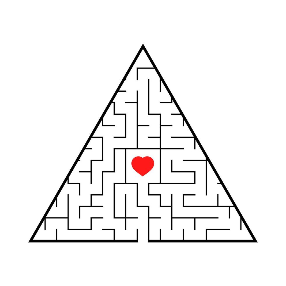 Triangular labyrinth with an input and an exit. Simple flat vector illustration isolated on white background. Pro Vector