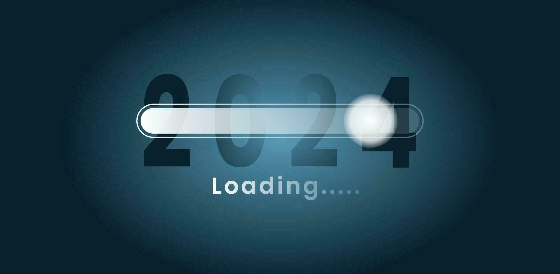 Loading bar 2024 Digital technology progress blue gradient background. Goodbye December 2023. Welcome 2024. vector illustration.