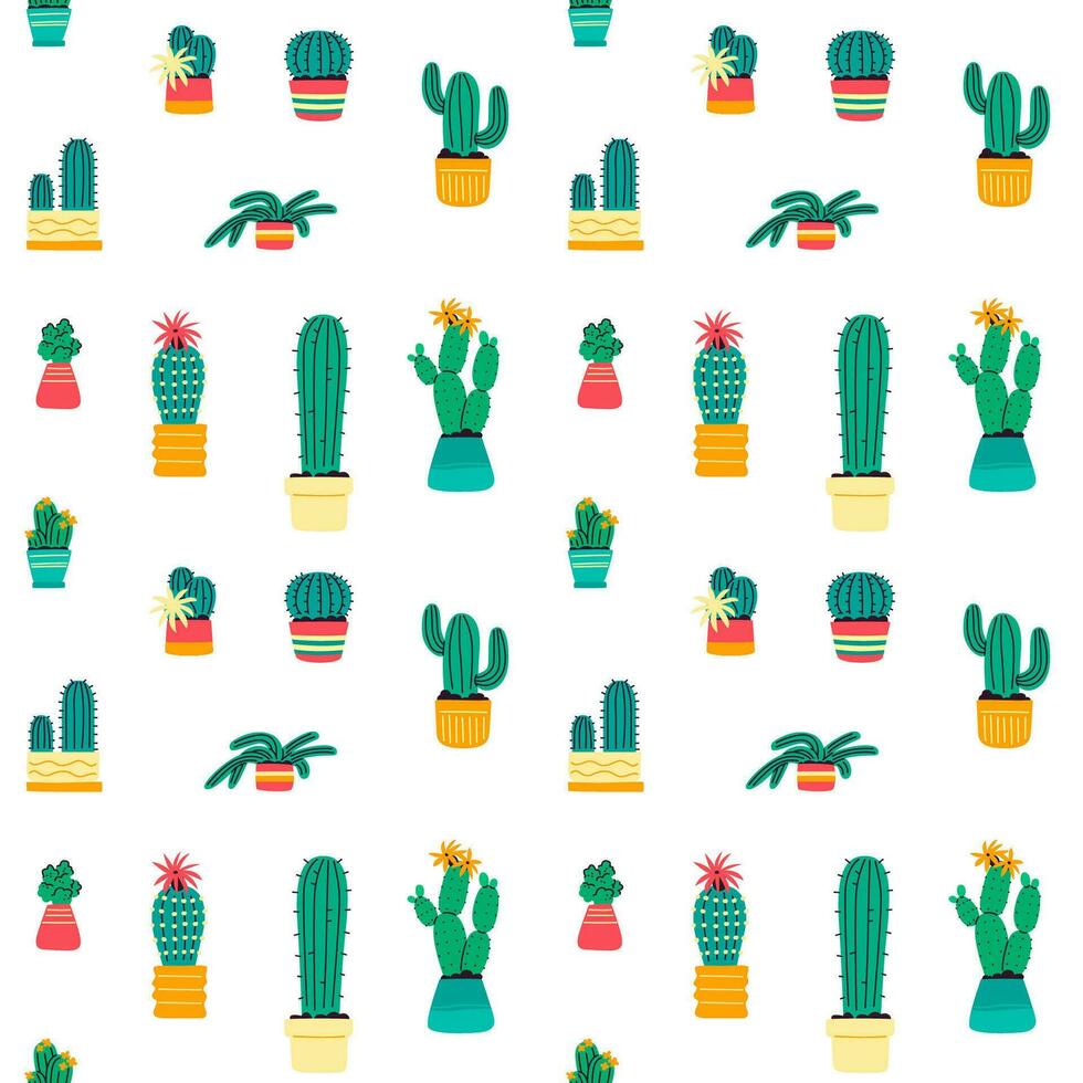 Vector seamless pattern with different cactus in pots on a white background. Pro Vector