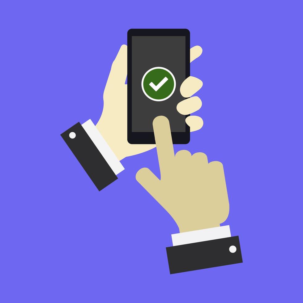 Click on check on smartphone on background vector
