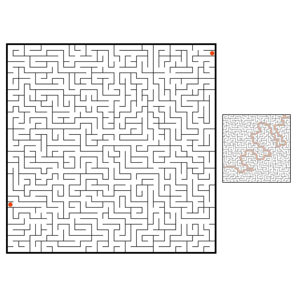 Abstract square maze. Game for kids. Puzzle for children. One entrance, one exit. Labyrinth conundrum. Flat vector illustration isolated on white background. With answer. Pro Vector