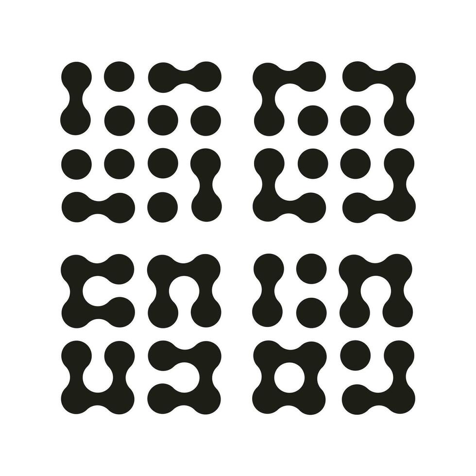 Metaball simple icons. Connected dots vector signs. Integration abstract symbol. Circles pattern. Point movement. Connected blobs. Metaballs transition. Vector illustration. Set of flat logos. Eps. Pro Vector