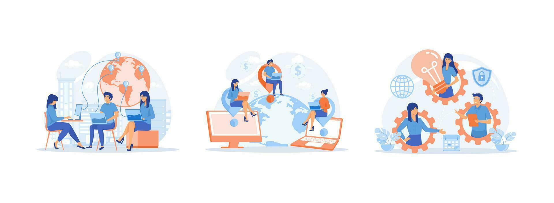 Outsourcing company concept, Developers team working scene, Idea of teamwork and project. Outsourcing set flat vector modern illustration Pro Vector