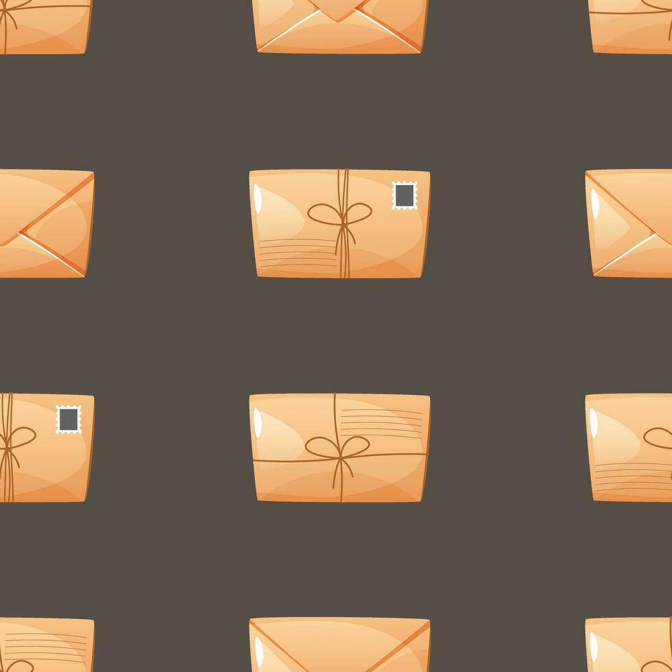 seamless pattern of closed envelopes with letters, postcards. Repeating background with mailing envelopes. Vector illustration on a dark background for packaging and decoration Pro Vector