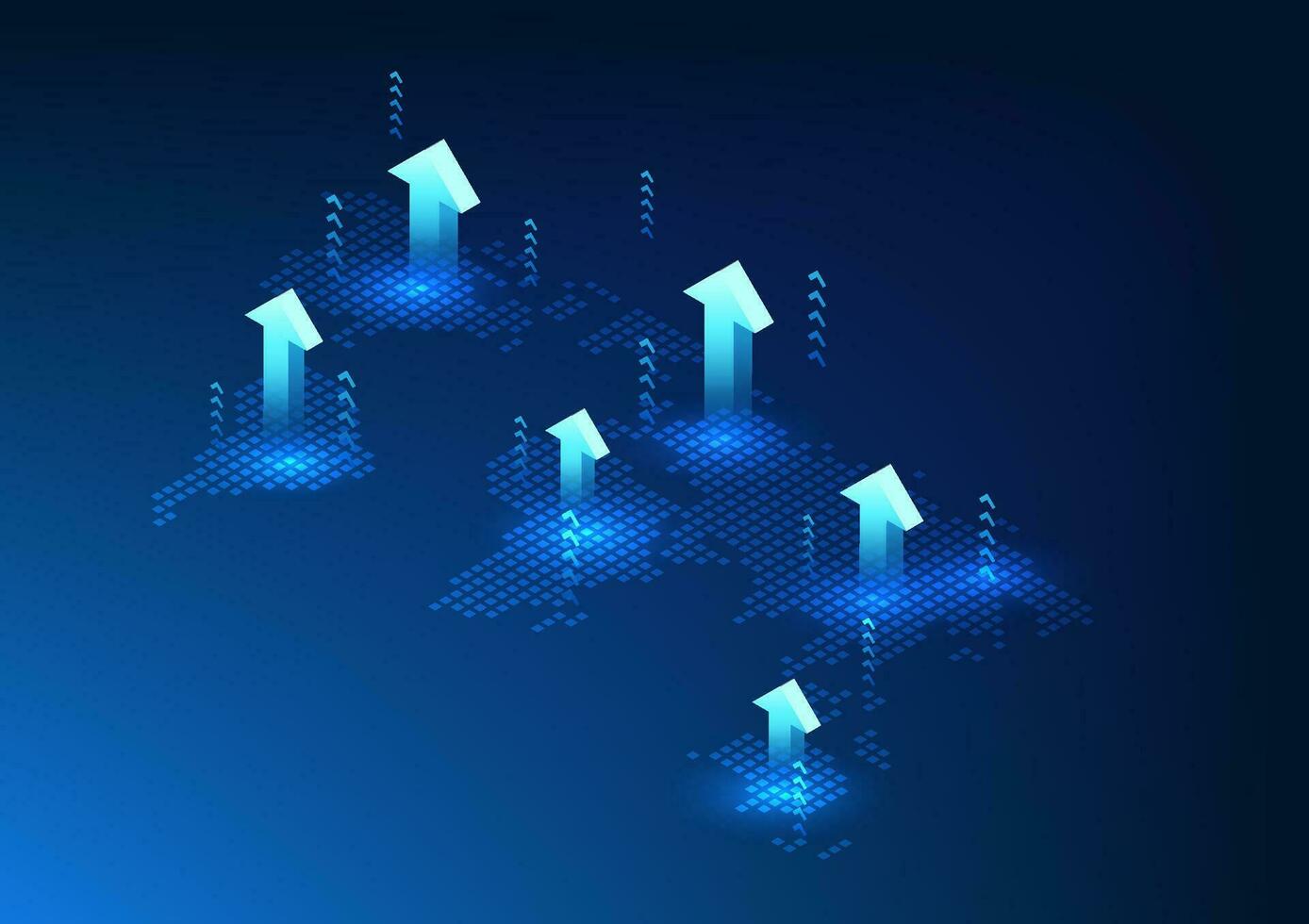 World map technology that shows the growth of technology that spreads around the world Giving people access to information in a timely manner It is a vector arrow pointing up from the world map. Pro Vector
