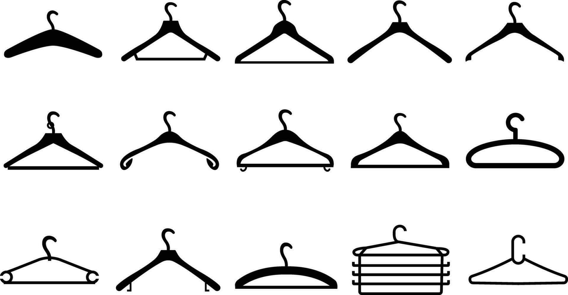 Clothes Hanger Icon in flat style set. isolated on collection use in Laundry, Wardrobe. Fitting Room Symbol for Info Graphics, Design Elements, vector for apps and website Pro Vector