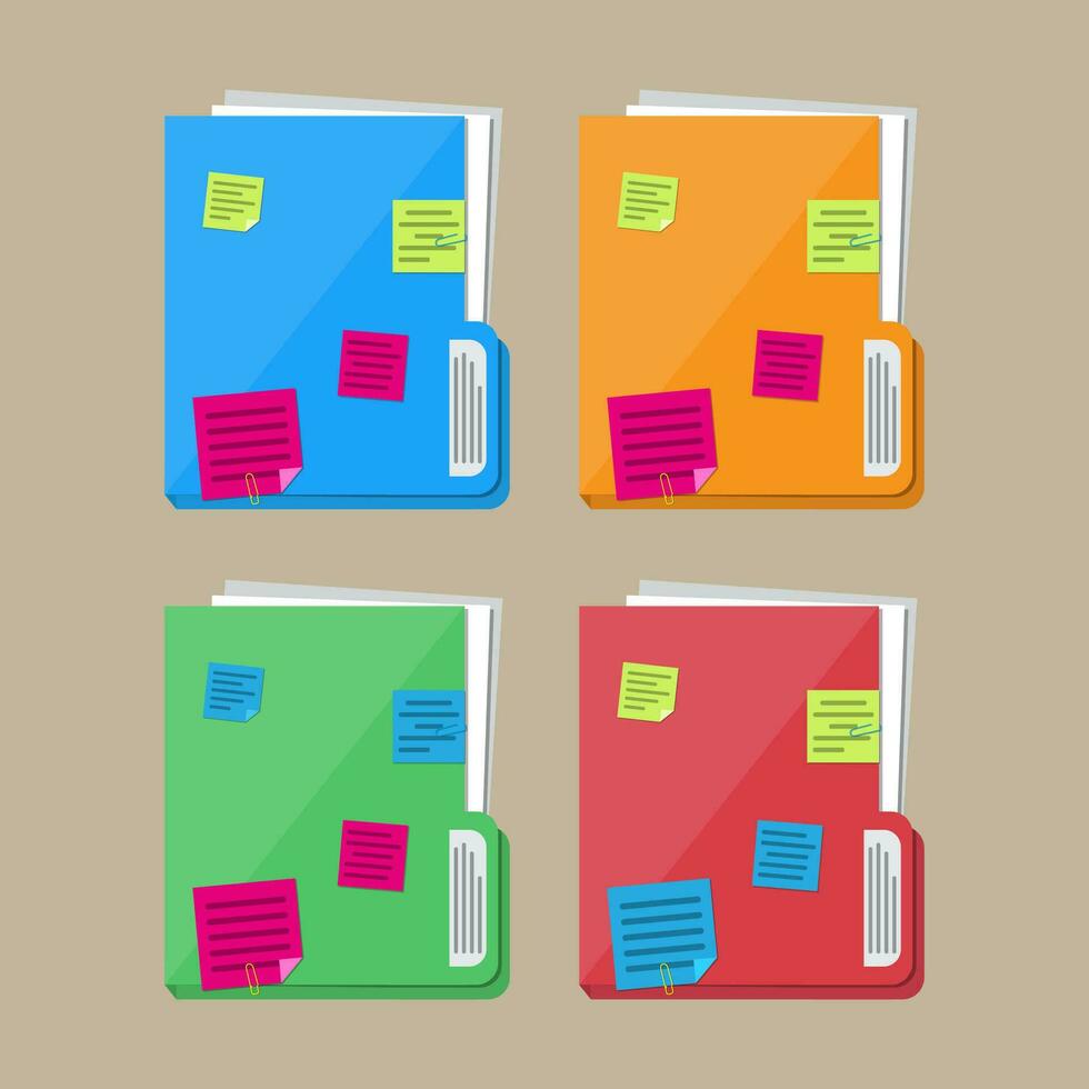 Documents folder with paper sheets and sticky notes. Vector illustration in flat style Pro Vector