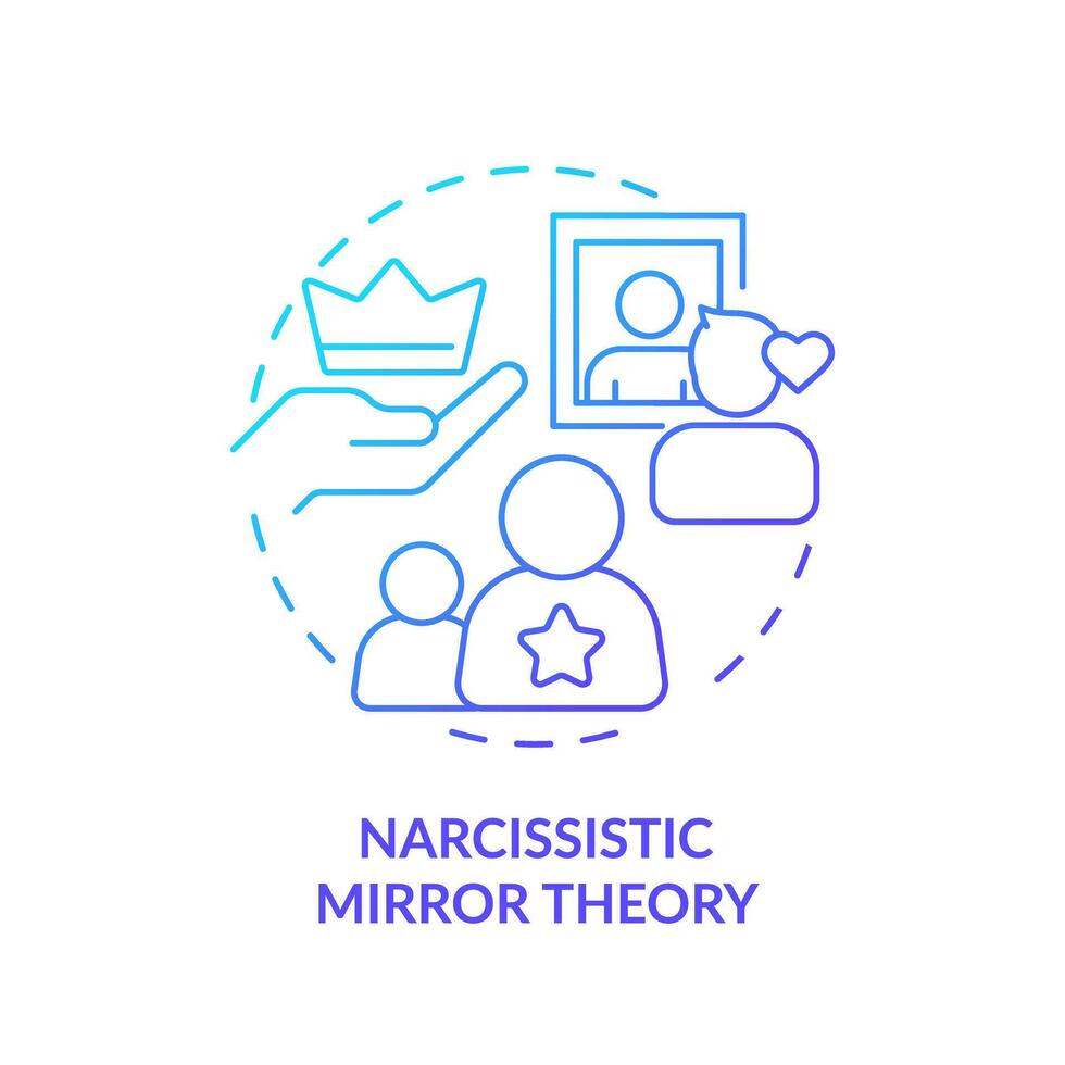 2D thin line gradient icon narcissistic mirror theory concept, isolated vector, blue illustration representing codependent relationship. Pro Vector