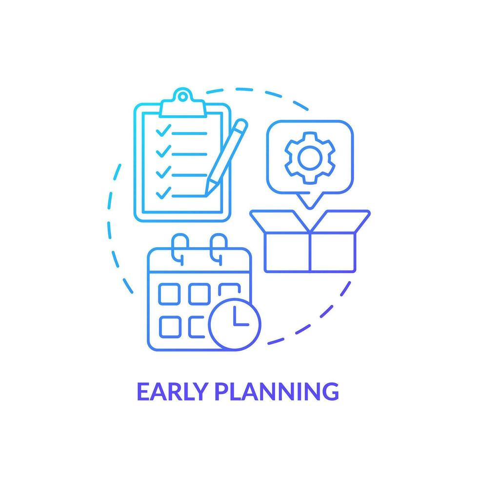 2D early planning gradient icon representing moving service, simple isolated vector, thin line illustration. Pro Vector