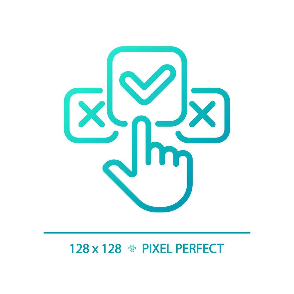 2D pixel perfect blue gradient clicking on check mark icon, isolated vector, thin line illustration representing comparisons. Pro Vector