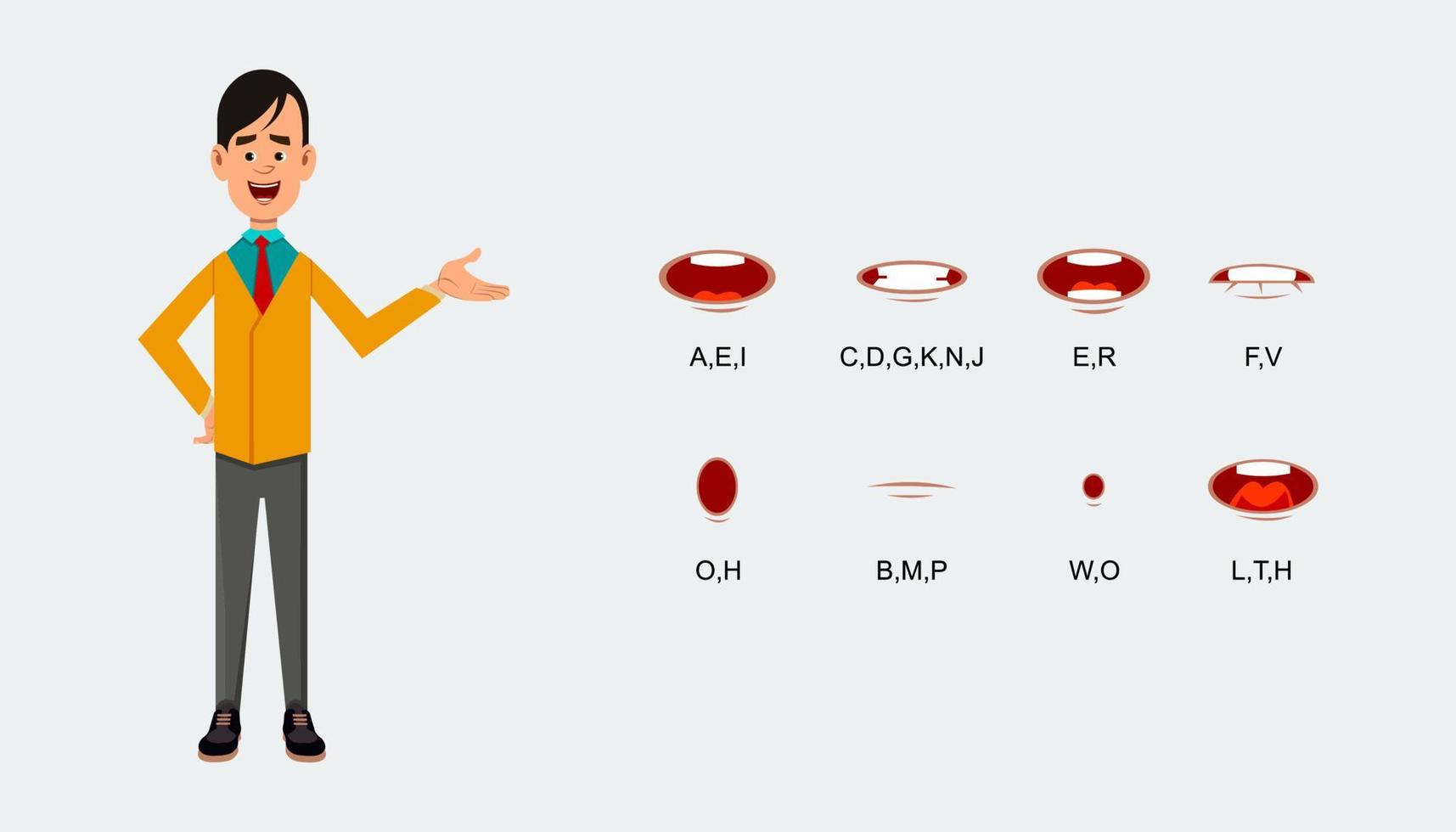 Character lip sync expression sheet. Character talking expression sheet. Pro Vector