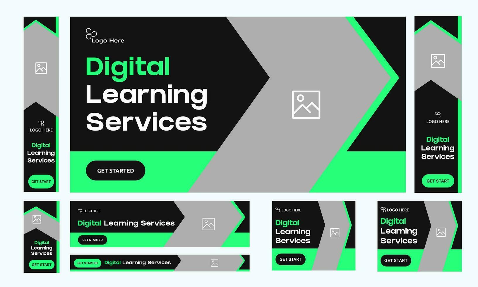 Editable vector eps digital learning concept web set banner design for social media post, learning banner, education system, vector eps 10 file format Pro Vector