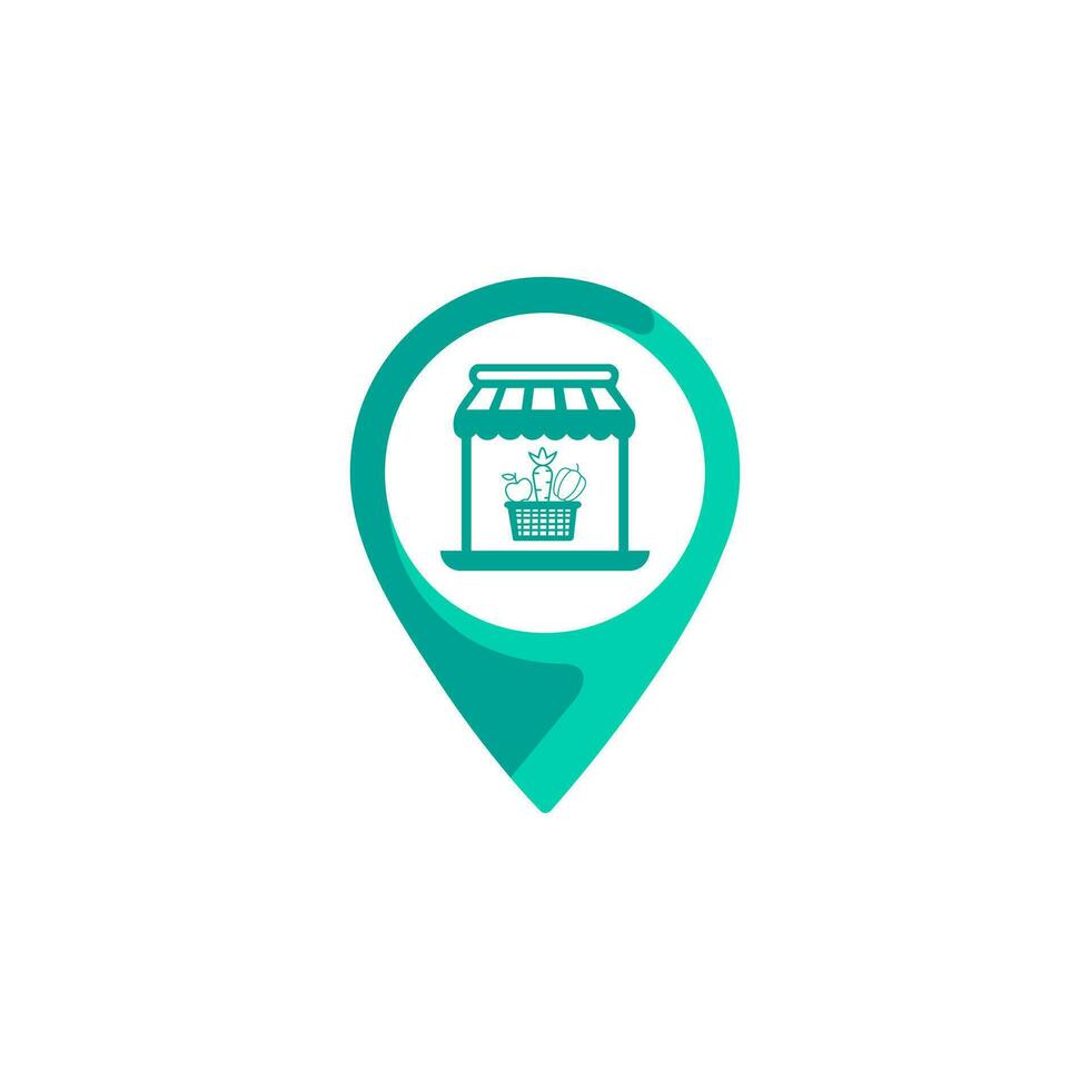 Map pointer with Fruits and Vegetables store  icon. Flat design style eps 10 gps icon vector