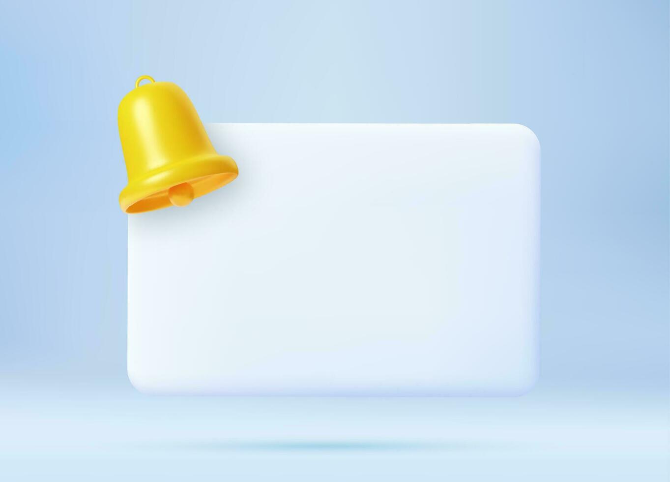 3d render Empty reminder popup, push notification icon with Cute yellow bell. 3D Model render for design. Email web symbol, mobile phone app, template, copy space. Vector illustration Pro Vector