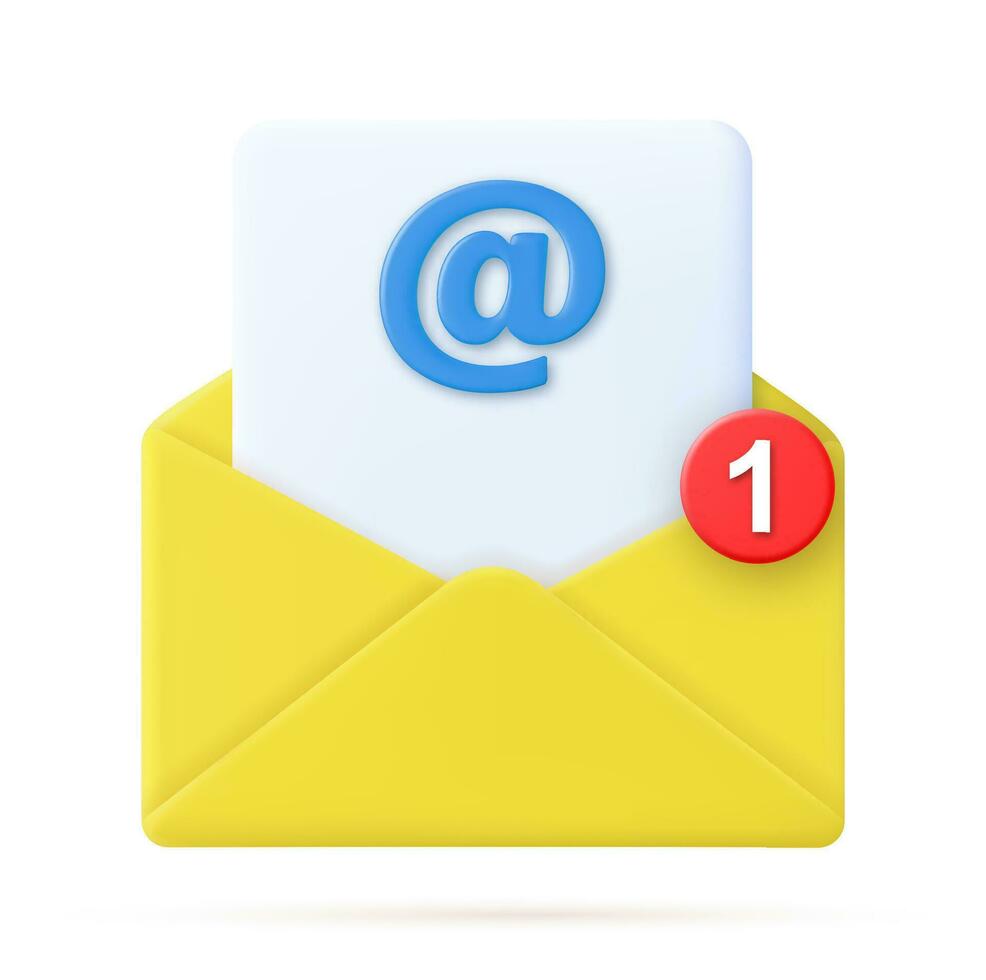 3d Render open mail Envelope with with letter icon isolated on white background. Incomong message notification. Vector illustration Pro Vector