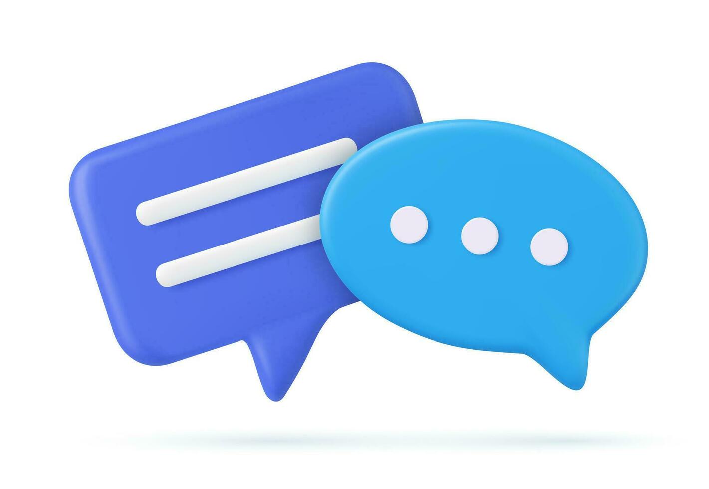 3d Chat bubble rendering. 3d speak bubble. Chatting box, message box. 3D Web. Social network communication concept. Talk, dialogue, messenger or online support concept. concept. Vector illustration Pro Vector