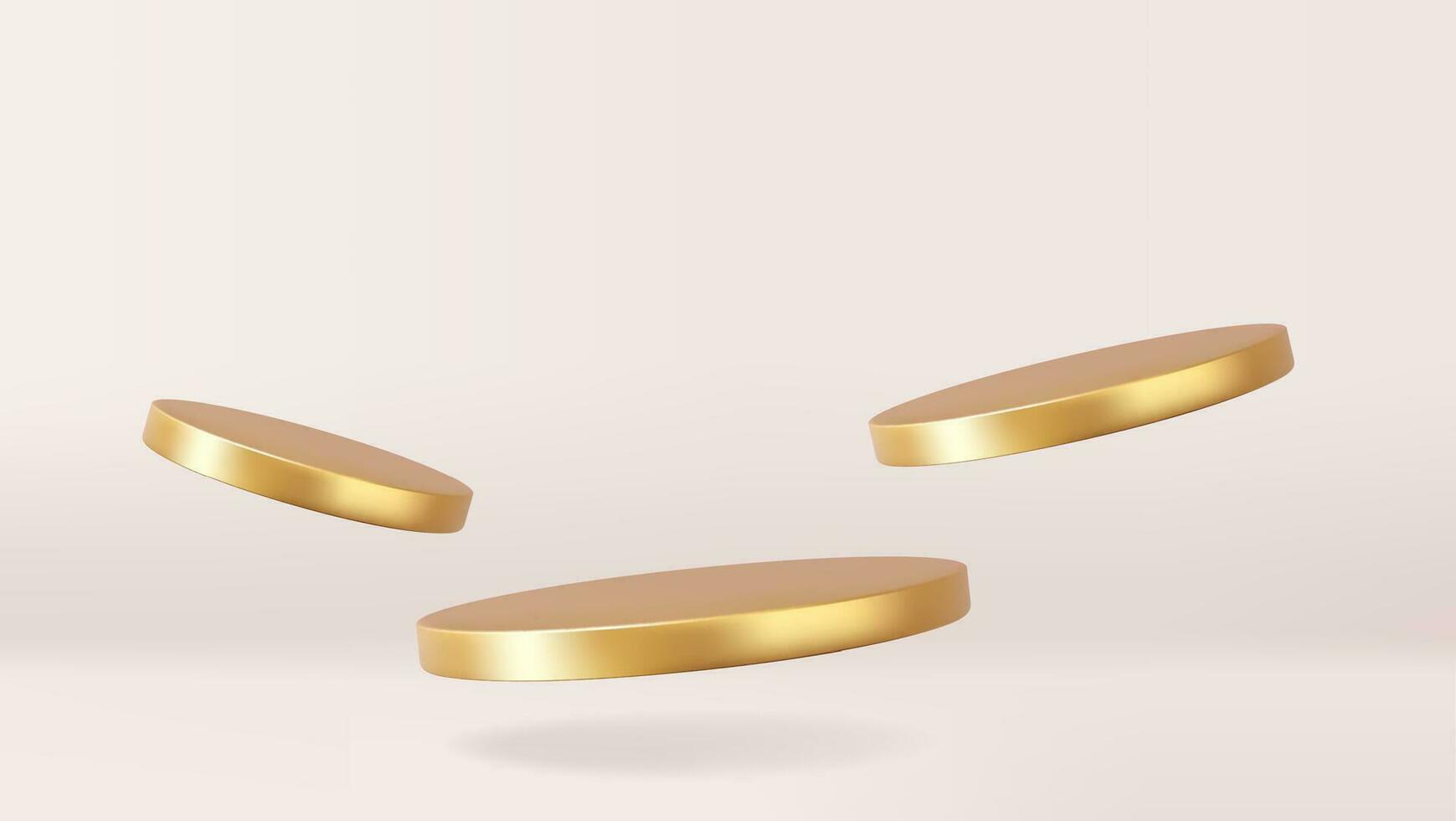 3d gold round podium with shadow. Round winner pedestal. 3d empty platform. 3d rendering. Vector illustration Pro Vector