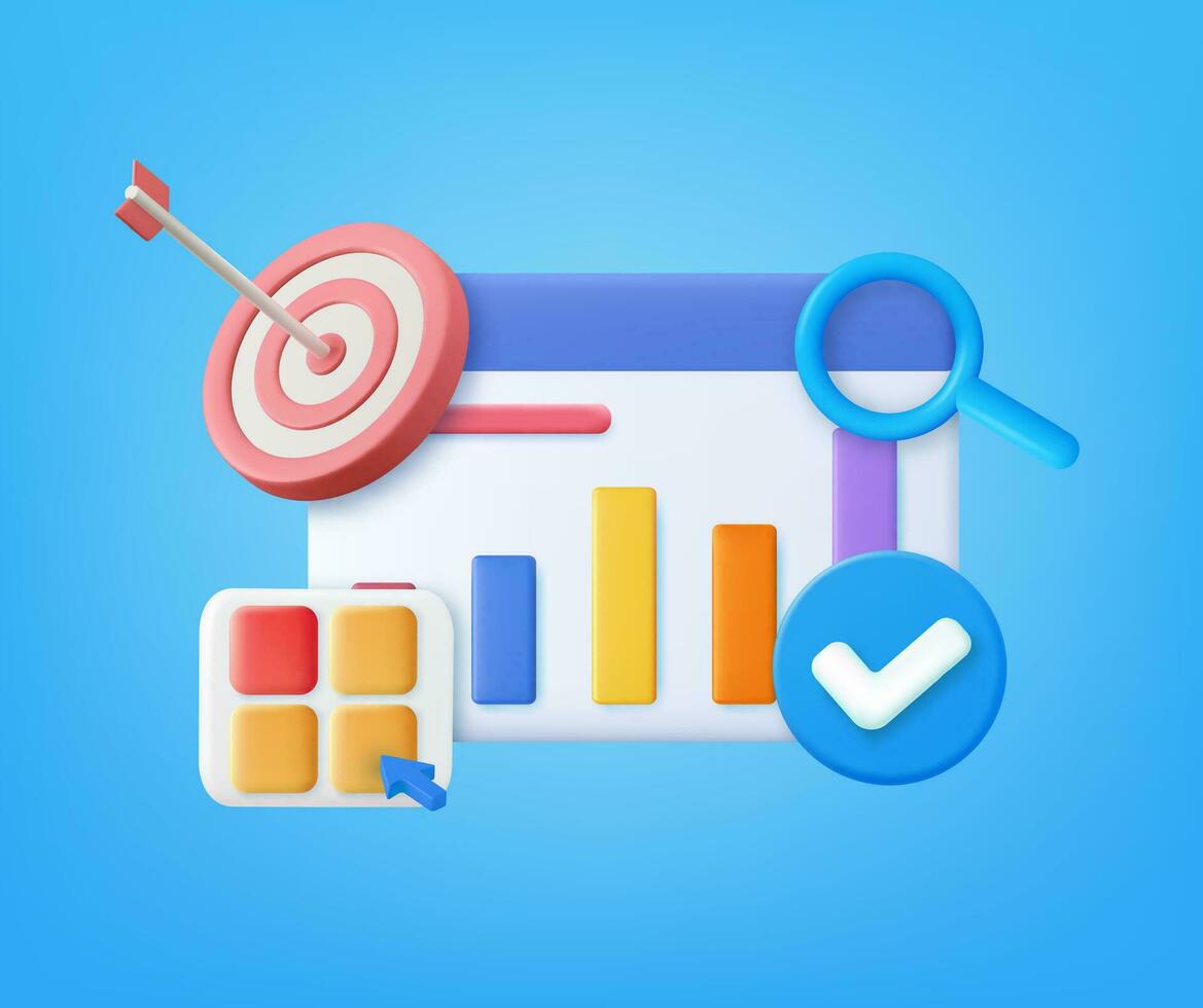 3d Online marketing, financial report chart, data analysis, and web development concept. SEO search engine optimization concept. 3d rendering. Vector illustration Pro Vector
