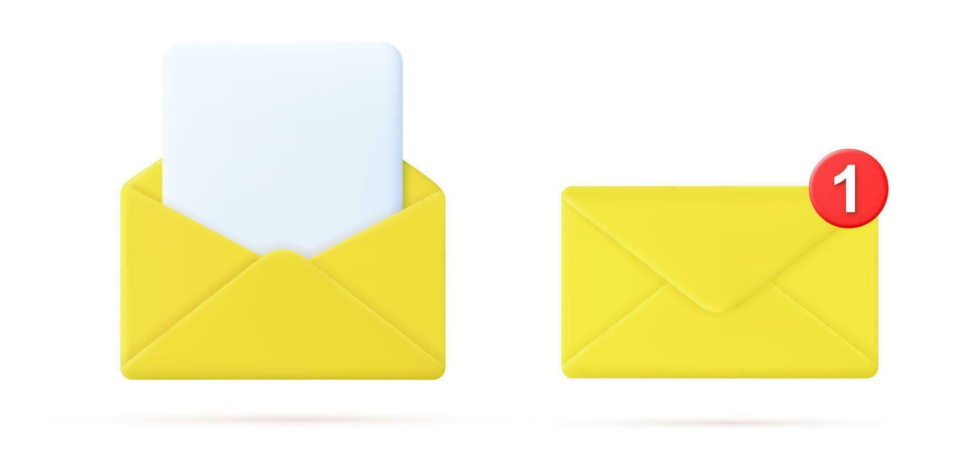 3d Render mail Envelope with paper documents icon isolated on white background. Read online message. Realistic symbol communication. Business news and invitations. Vector illustration Pro Vector