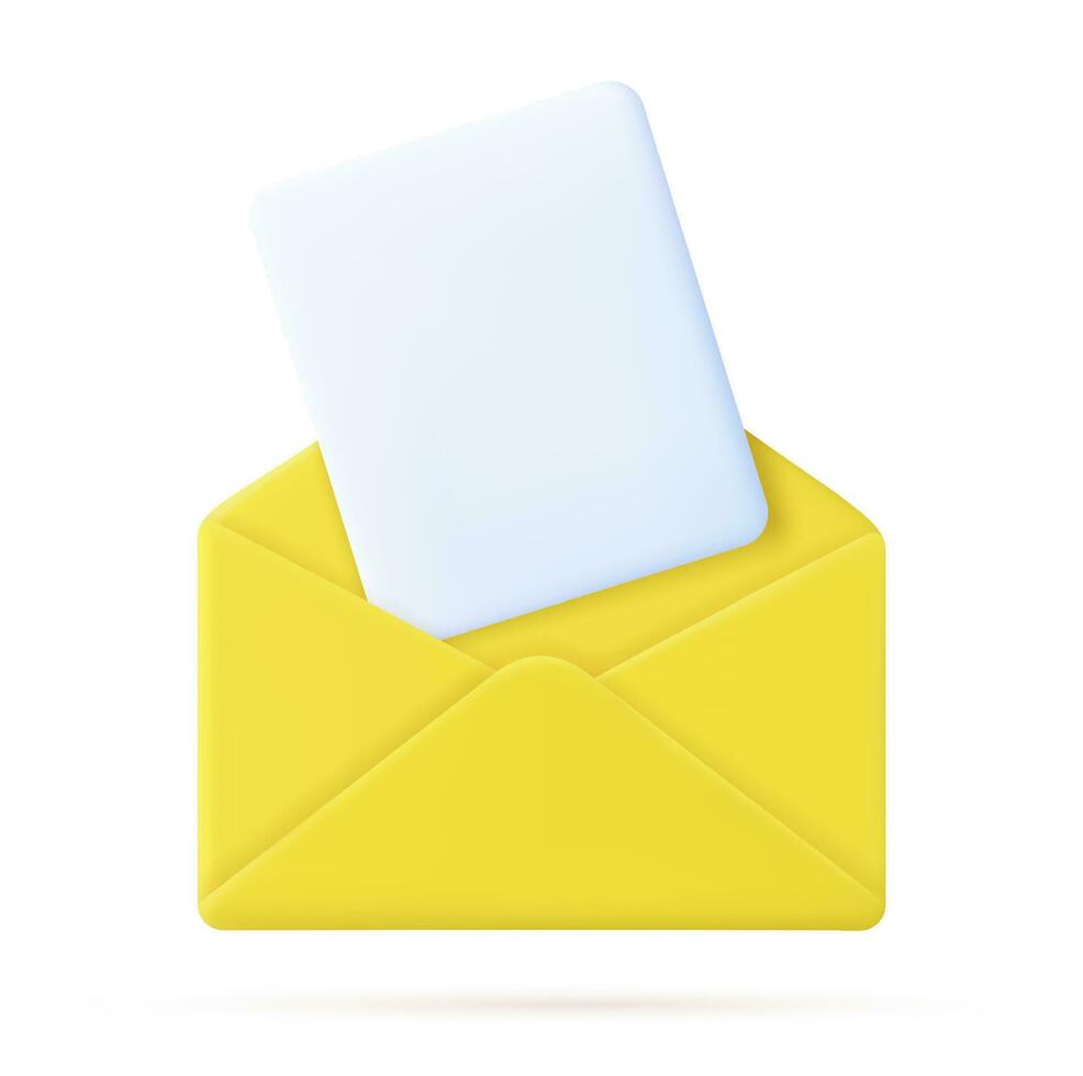3d Render open mail Envelope with fly paper documents icon isolated on white background. . Read online message. Realistic symbol communication. Business news and invitations. Vector illustration Pro Vector