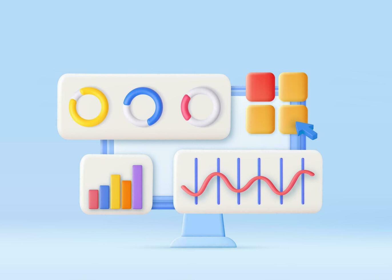 3D 3d Financial report chart, SEO Optimization, web analytics and seo marketing concept. 3d rendering. Vector illustration Pro Vector
