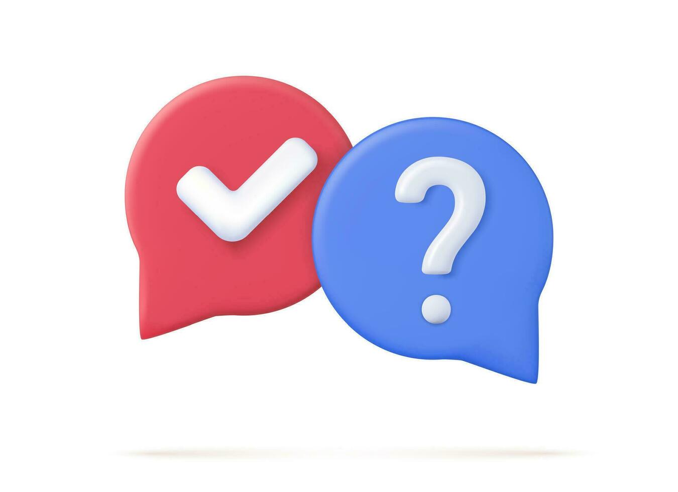 3d survey of the reaction of speech bubbles. Cancellation icons, confirmed signs of false rejection or clarification, question. 3d rendering. Vector illustration Pro Vector