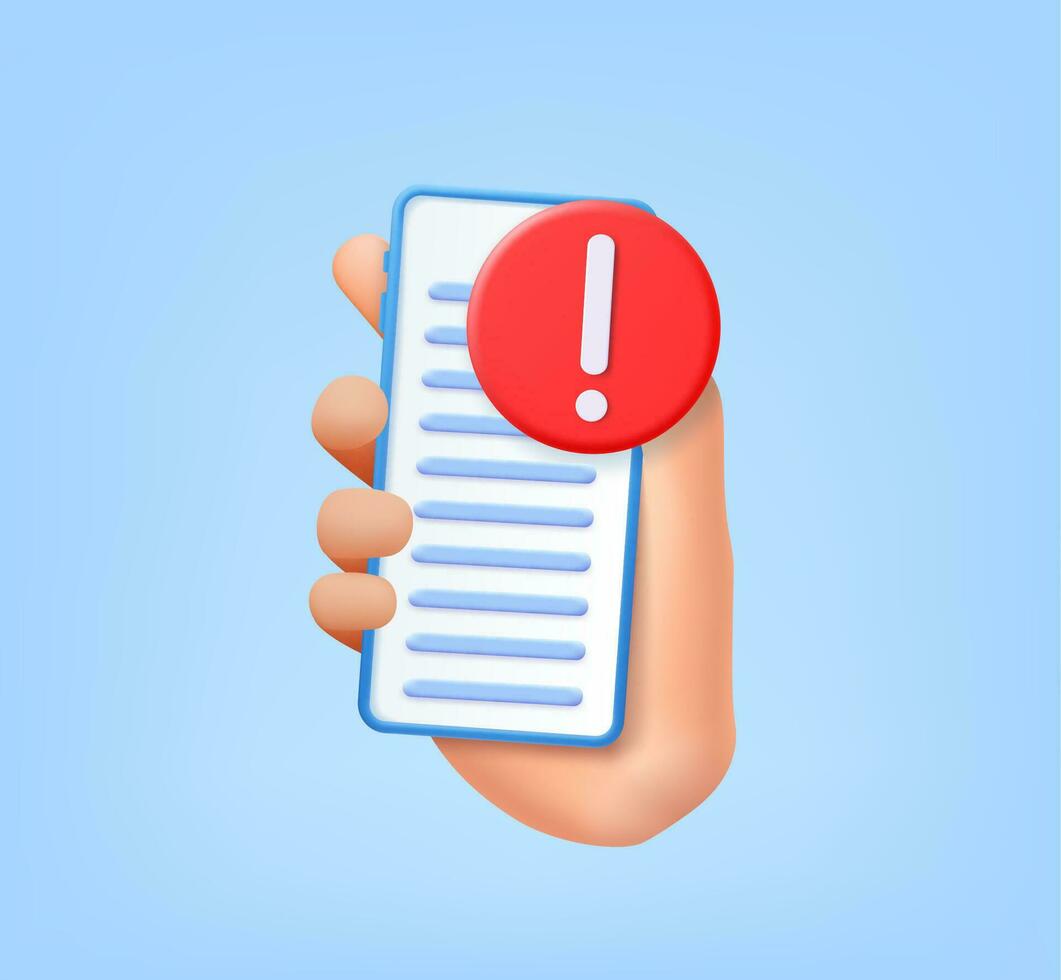 3d Hand holding Mobile phone Attention signal Exclamation point. Alert message mobile notification. 3d rendering. Vector illustration Pro Vector