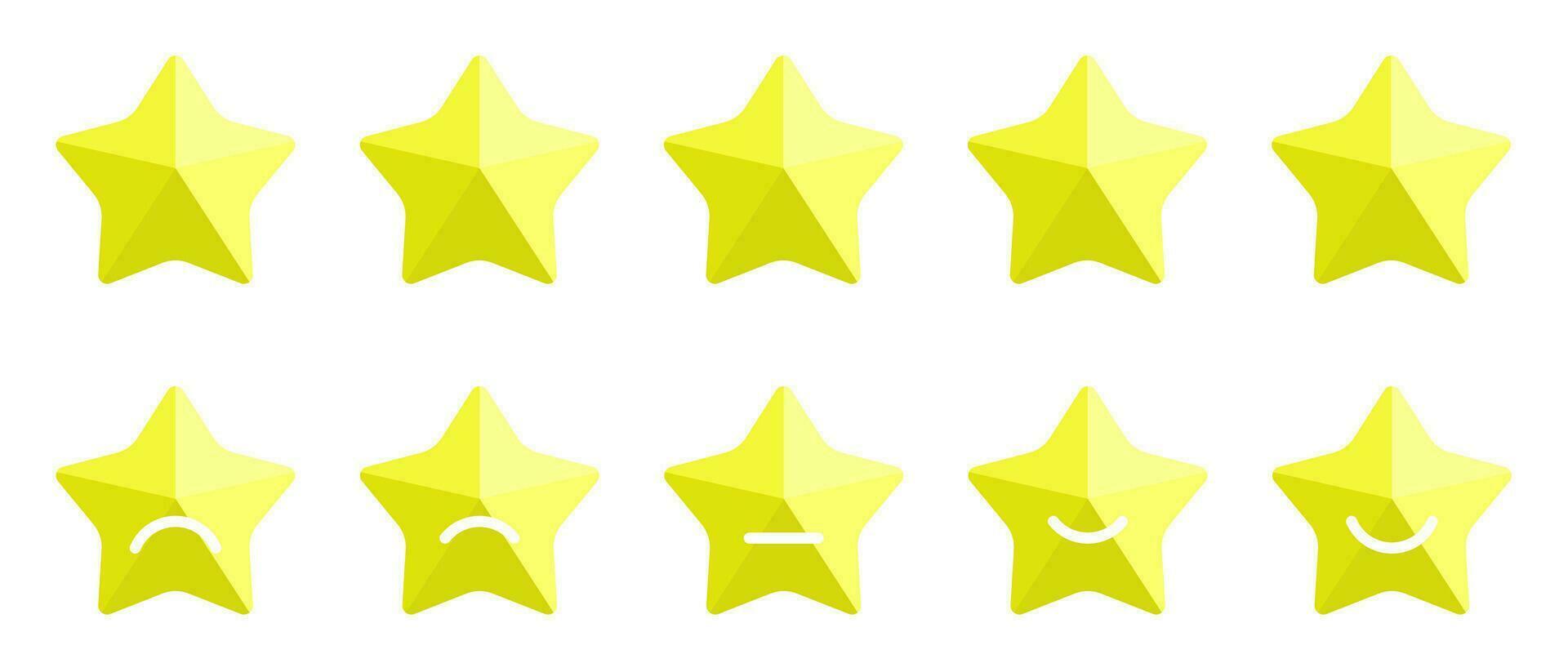 Five stars flat icon design with different expressions, customer review concept on web Pro Vector