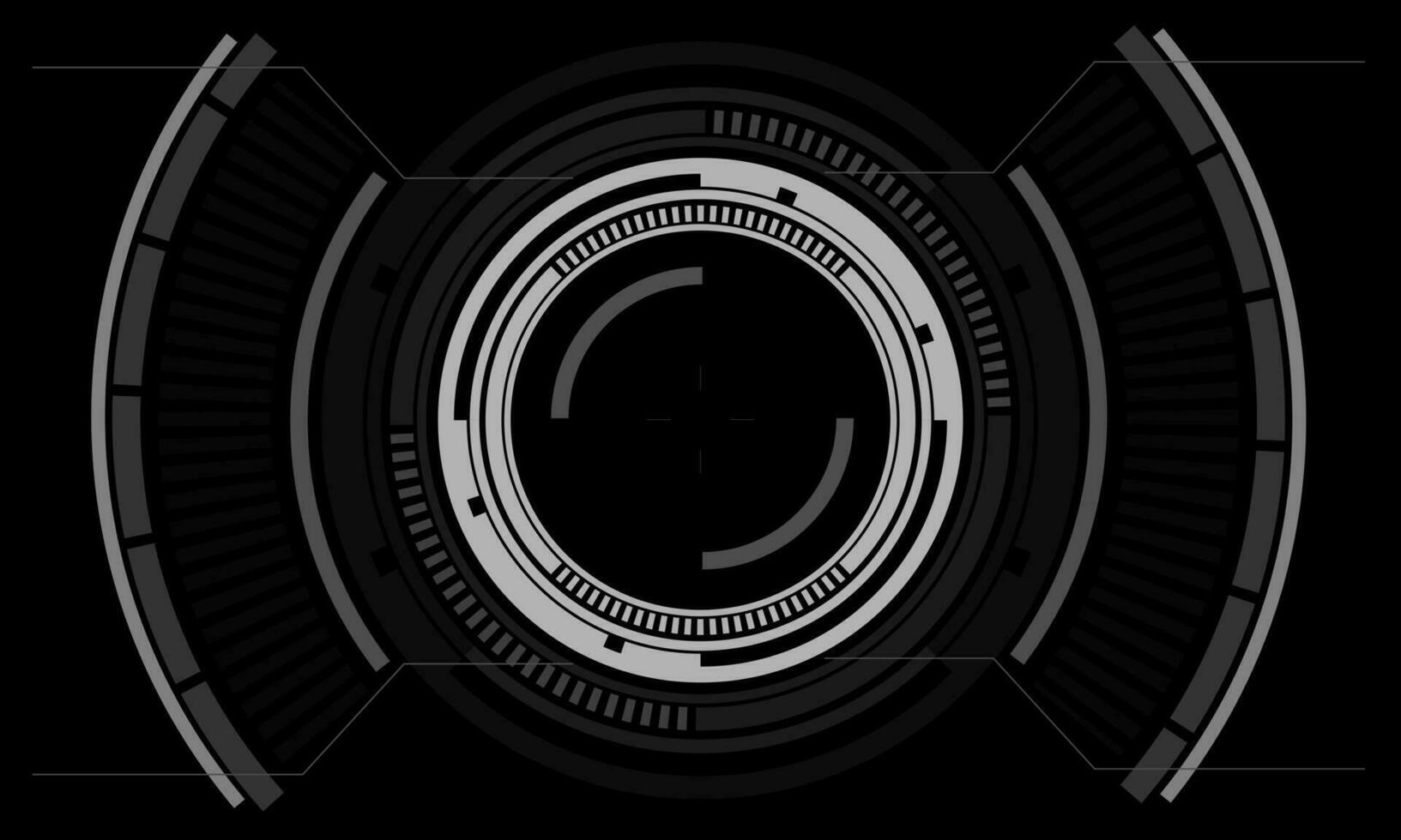 HUD sci-fi circle interface screen view white geometric design virtual reality futuristic technology creative display on black vector Pro Vector