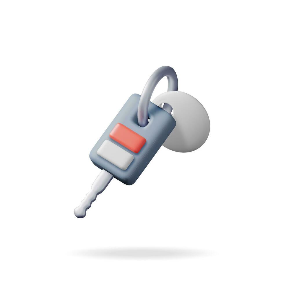 3D Car Keys Isolated on White. Render Electronic Car Key with Alarm System. Keychain for Vehicle. Security Remote Door Open Device. Realistic Vector Illustration Pro Vector