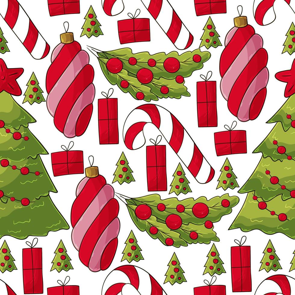 New Year. Seamless vector pattern. Pattern in hand draw style. Can be used for fabric, packaging, wrapping paper, textile and etc Pro Vector